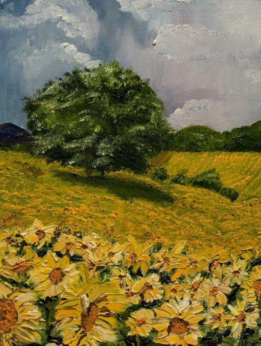 Tuscan Sunflowers White Modern Wood Framed Art Print with Double Matting by Melious, Amy