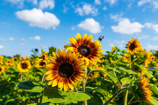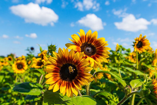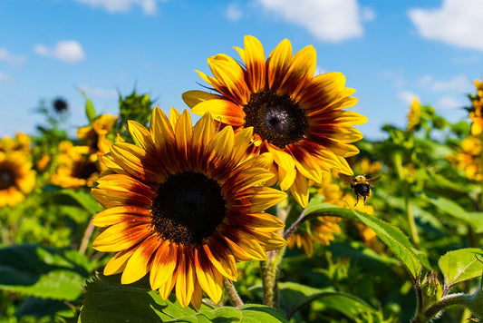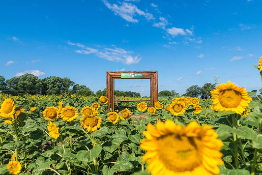 Sunflower Field White Modern Wood Framed Art Print with Double Matting by Brent, Paul