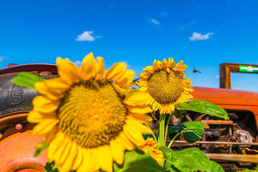 Denver Downs Sunflowers 2 White Modern Wood Framed Art Print with Double Matting by Malone, Will