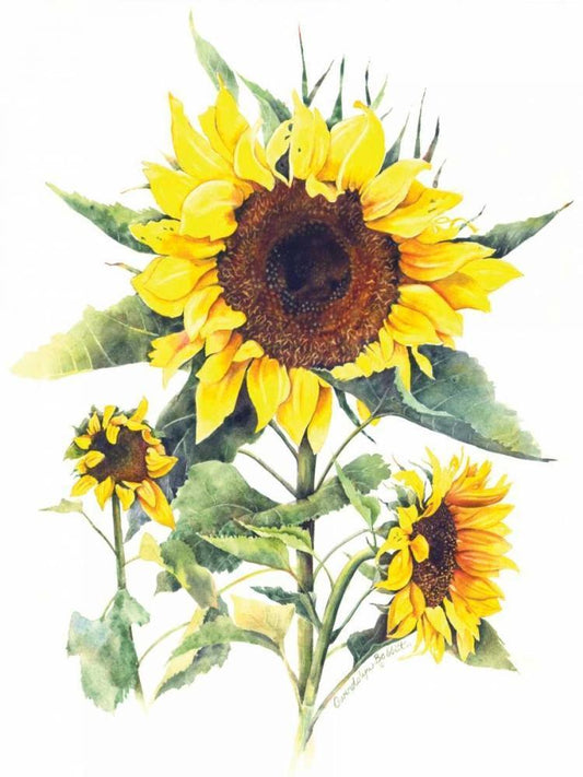 Arianna Sunflowers I White Modern Wood Framed Art Print with Double Matting by Brent, Paul