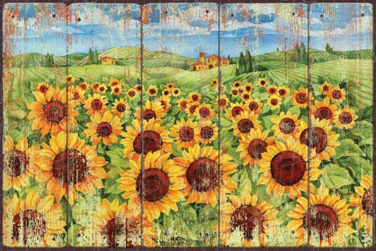 Denver Downs Sunflowers 7 White Modern Wood Framed Art Print with Double Matting by Malone, Will
