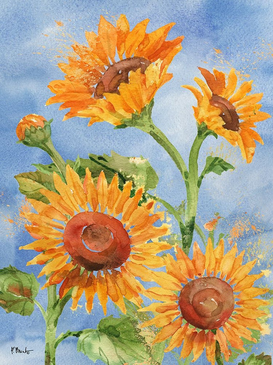 Arianna Sunflowers Vertical White Modern Wood Framed Art Print with Double Matting by Brent, Paul