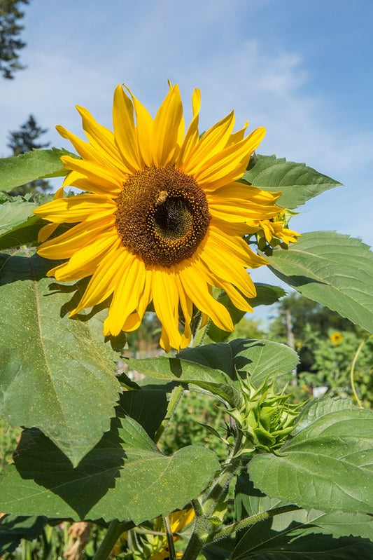 Bellevue-Washington State-USA Sunflower plant on a sunny day Black Ornate Wood Framed Art Print with Double Matting by Horton, Janet