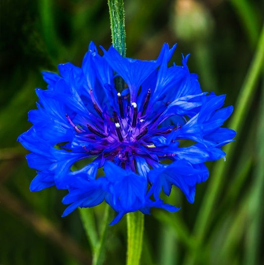Colorful blue Bachelors Button Cornflower blooming-Native to Europe now all over the World Black Ornate Wood Framed Art Print with Double Matting by Perry, William