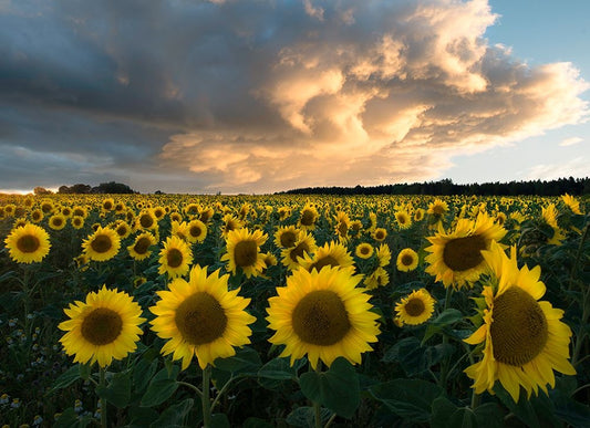 Sunflowers In Sweden. Black Ornate Wood Framed Art Print with Double Matting by Lindsten, Christian