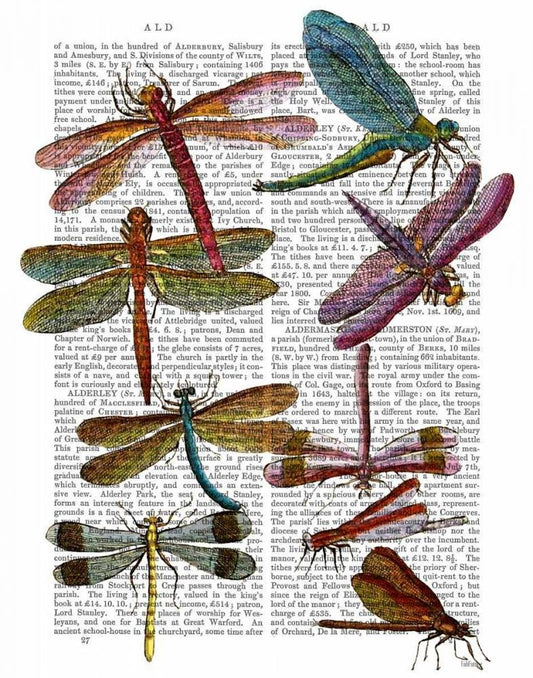 Dragonflies Print 2 Black Ornate Wood Framed Art Print with Double Matting by Fab Funky
