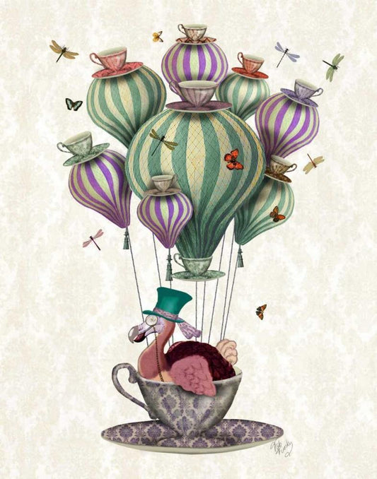 Dodo in Teacup with Dragonflies Black Ornate Wood Framed Art Print with Double Matting by Fab Funky