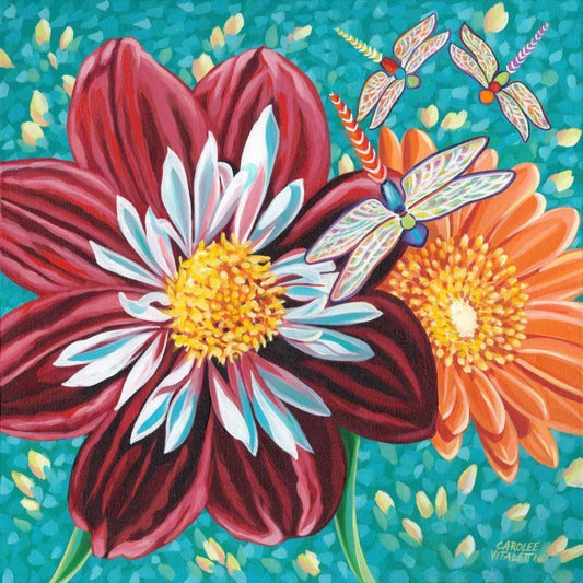 Dragonfly on Blooms I Black Ornate Wood Framed Art Print with Double Matting by Vitaletti, Carolee