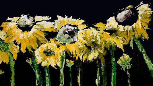 Sunflower Field on Black White Modern Wood Framed Art Print with Double Matting by Chapman, Marcy