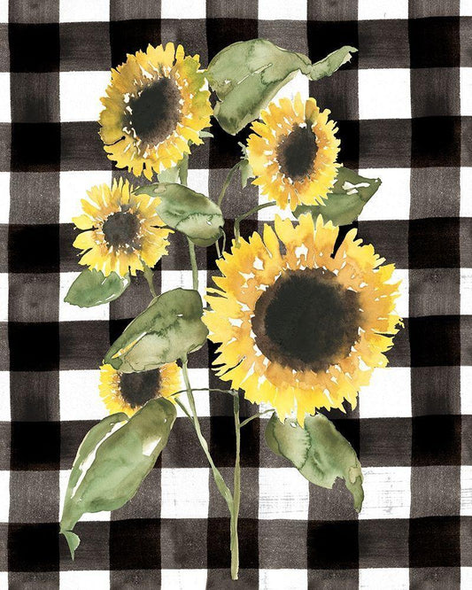 Buffalo Check Sunflower II White Modern Wood Framed Art Print with Double Matting by Goldberger, Jennifer