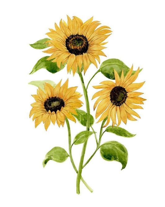 Sunflower Trio I White Modern Wood Framed Art Print with Double Matting by Warren, Annie