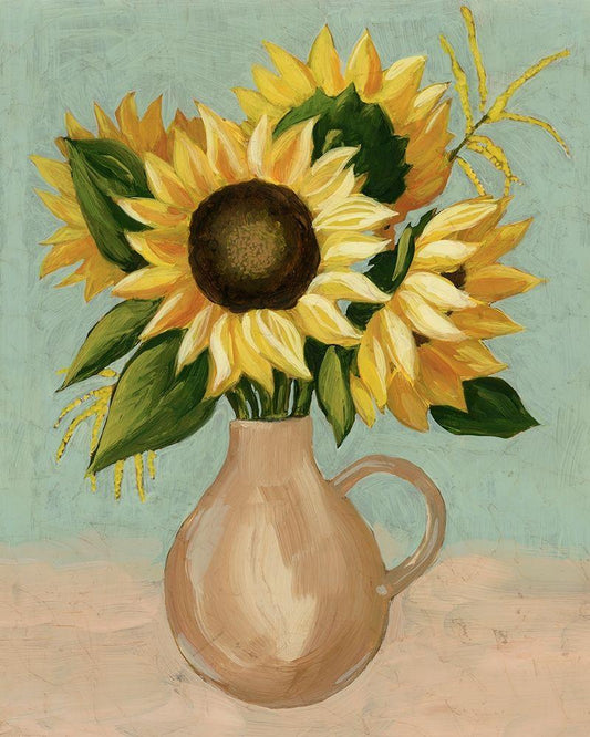 Sunflower Vase I White Modern Wood Framed Art Print with Double Matting by Warren, Annie