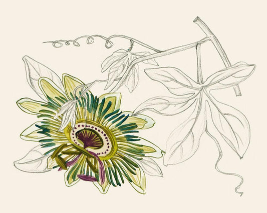 Passionflower I White Modern Wood Framed Art Print with Double Matting by Wang, Melissa