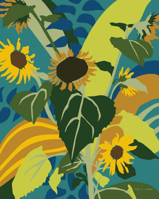 Sunflowers White Modern Wood Framed Art Print with Double Matting by Gallagher, Megan