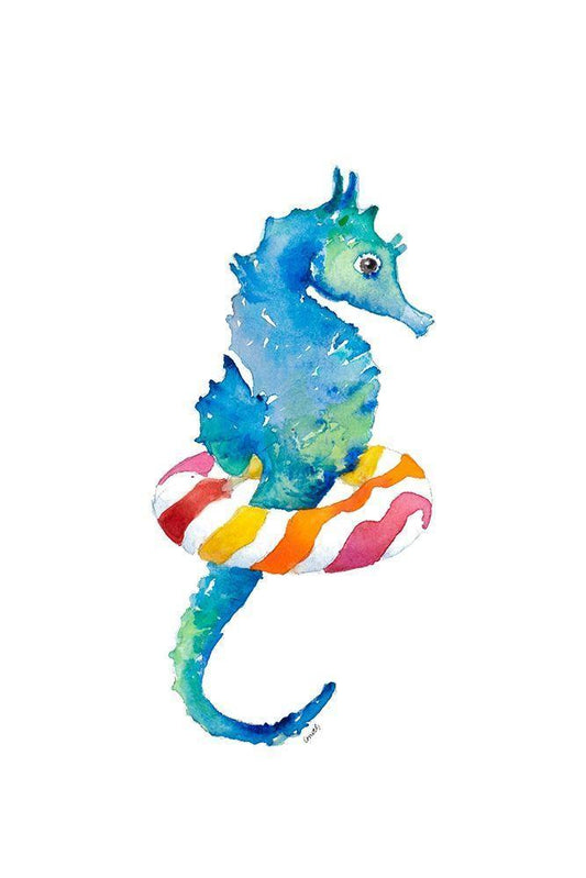 Seahorse with Inflatable White Modern Wood Framed Art Print with Double Matting by Loreth, Lanie