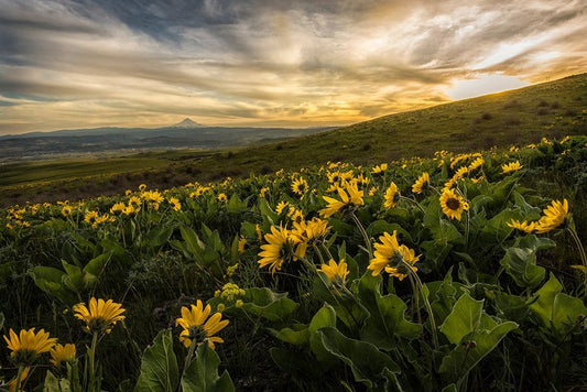 Sunflower Field White Modern Wood Framed Art Print with Double Matting by Amos, Andy