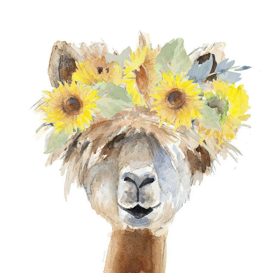 Sunflower Llama II White Modern Wood Framed Art Print with Double Matting by Loreth, Lanie