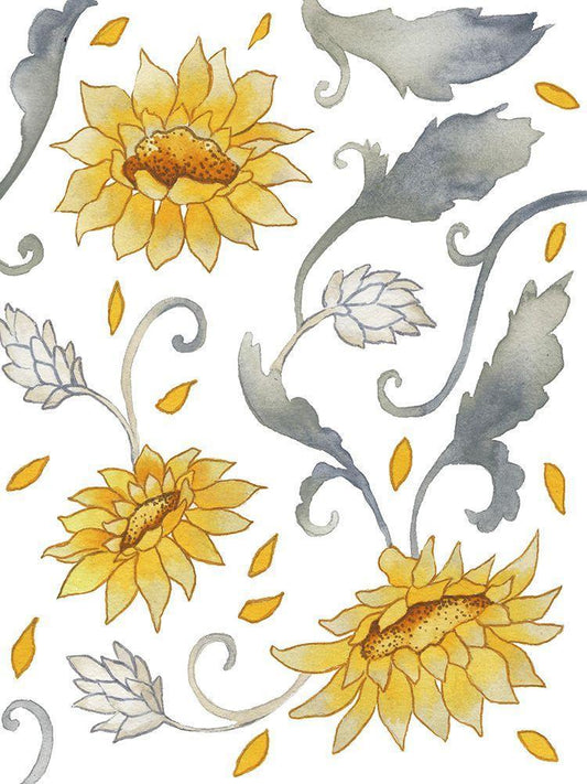 Sunflowers White Modern Wood Framed Art Print with Double Matting by Slivka, Jane