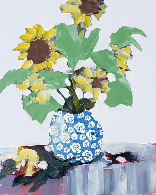 Sunflowers In Decorative Vase White Modern Wood Framed Art Print with Double Matting by Slivka, Jane