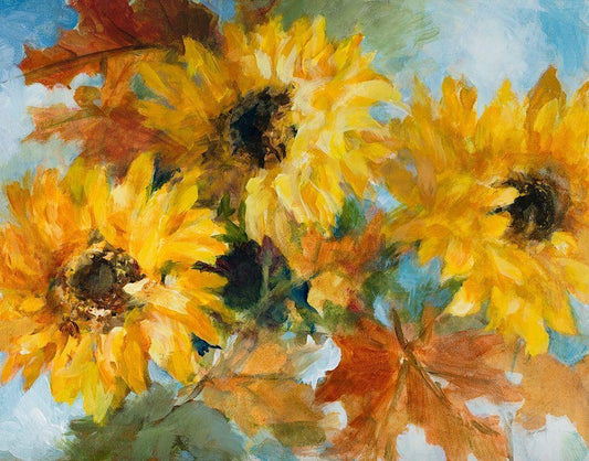 Sunflowers in the Fall White Modern Wood Framed Art Print with Double Matting by Medley, Elizabeth