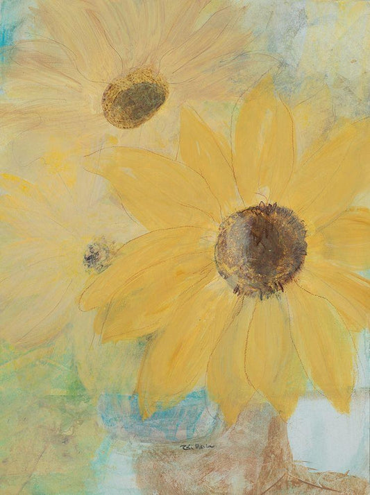 Quiet Breezy Sunflowers White Modern Wood Framed Art Print with Double Matting by Loreth, Lanie