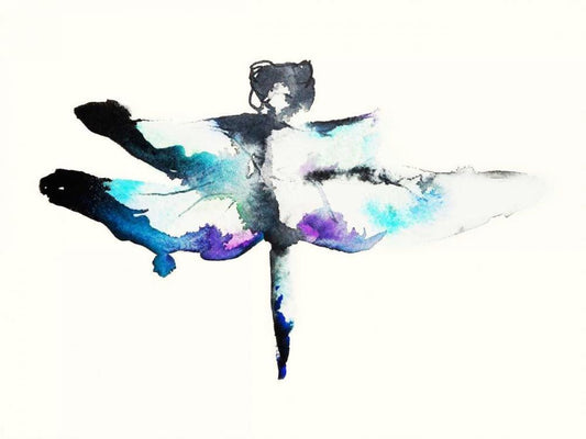 Turquoise and Violet Dragonfly White Modern Wood Framed Art Print with Double Matting by Johannesson, Karin