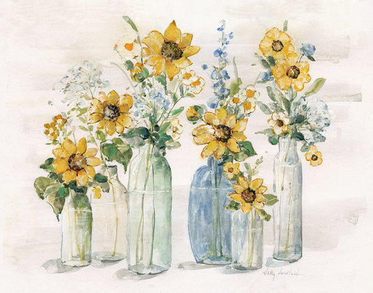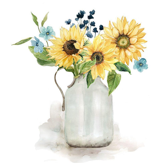 Fresh Picked Sunflowers White Modern Wood Framed Art Print with Double Matting by Knutsen, Conrad