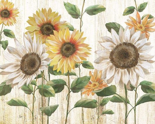 Sunflower Extravaganza White Modern Wood Framed Art Print with Double Matting by Robinson, Carol