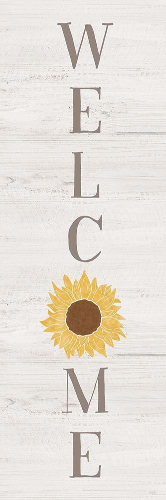 Sunflower Welcome White Modern Wood Framed Art Print with Double Matting by Carpentieri, Natalie