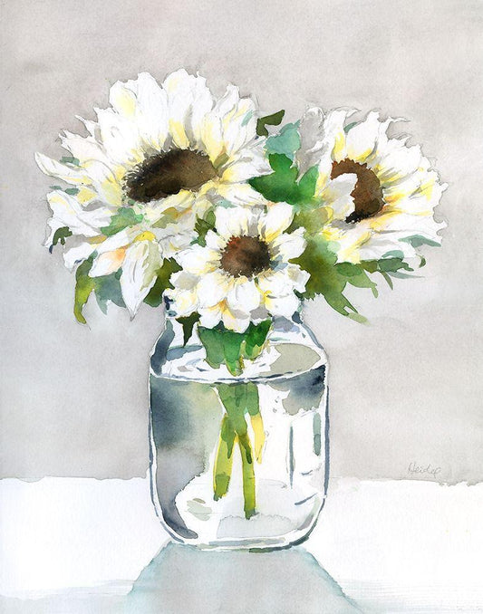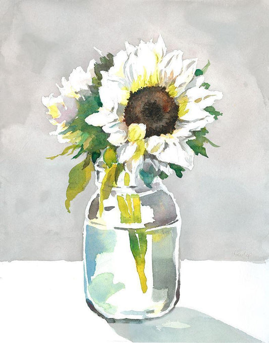 Sunflower White Modern Wood Framed Art Print with Double Matting by Jill, Susan