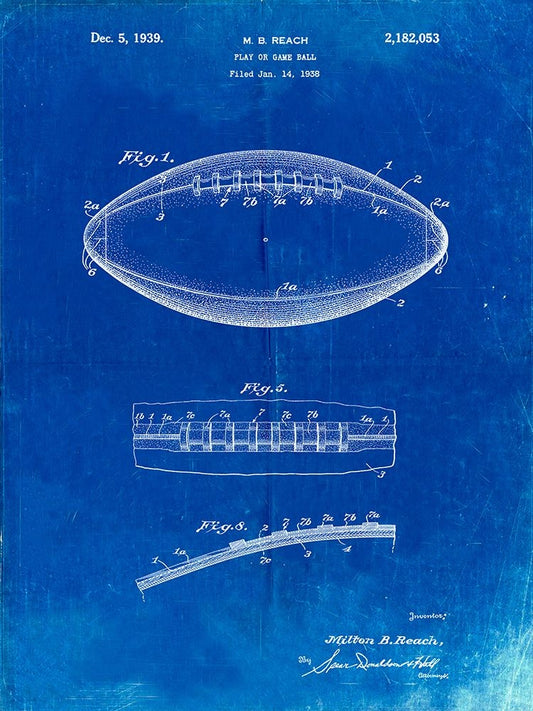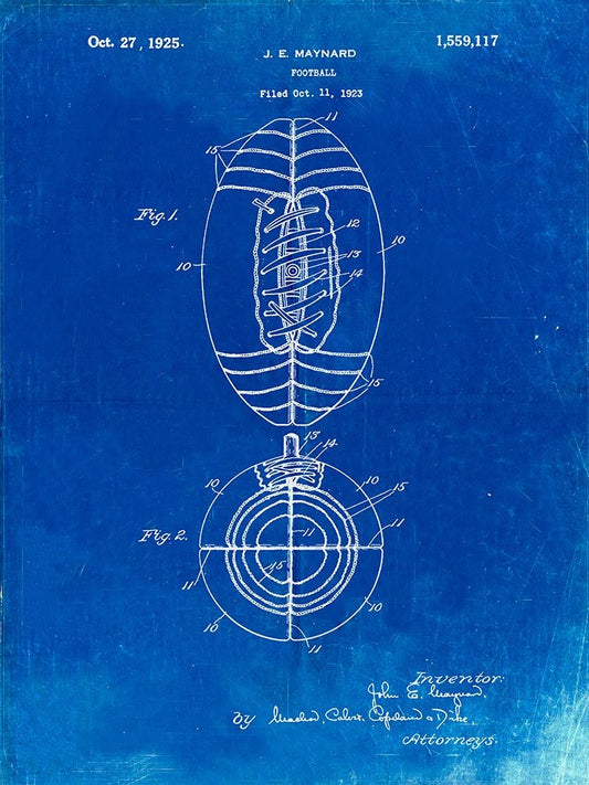 PP379-Faded Blueprint Football Game Ball 1925 Patent Poster White Modern Wood Framed Art Print with Double Matting by Borders, Cole