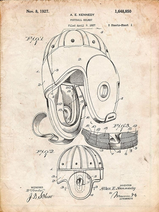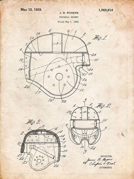 PP218-Vintage Parchment Football Helmet 1925 Patent Poster White Modern Wood Framed Art Print with Double Matting by Borders, Cole