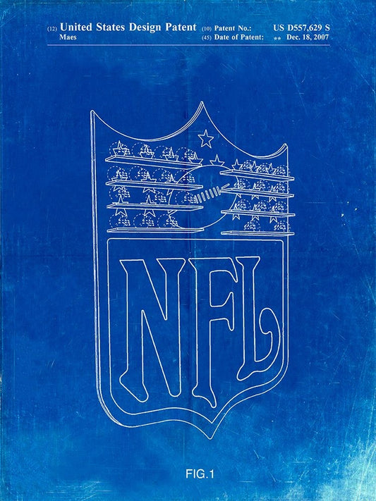 PP217-Faded Blueprint NFL Display Patent Poster White Modern Wood Framed Art Print with Double Matting by Borders, Cole