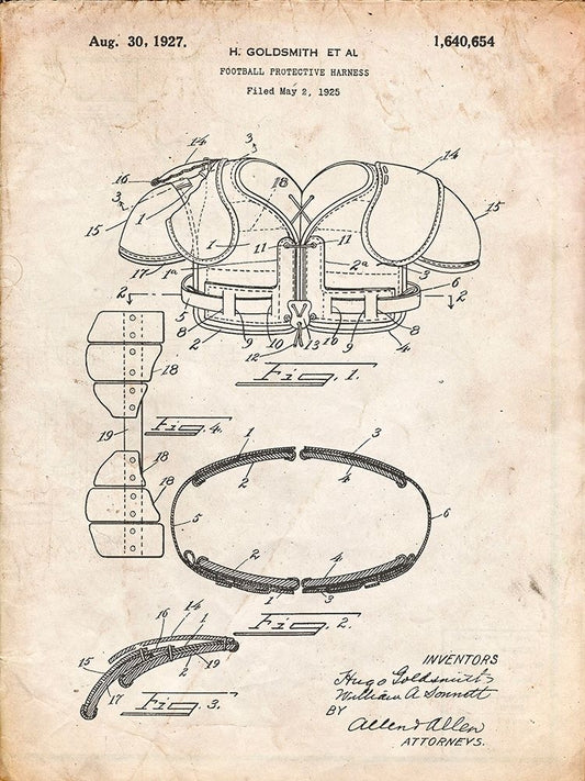 PP219-Vintage Parchment Football Shoulder Pads 1925 Patent Poster White Modern Wood Framed Art Print with Double Matting by Borders, Cole