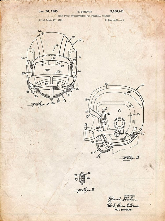 PP419-Vintage Parchment Face Mask Football Helmet 1965 Patent White Modern Wood Framed Art Print with Double Matting by Borders, Cole