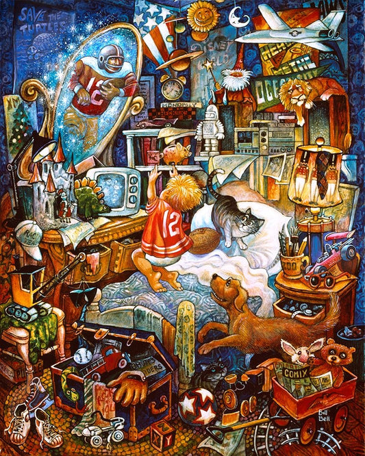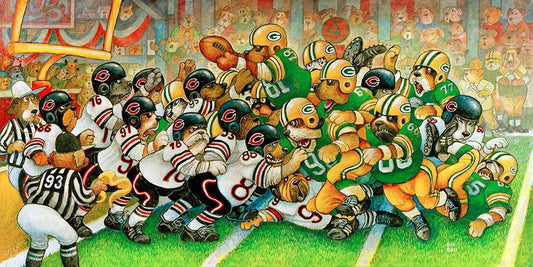 Football Dogs White Modern Wood Framed Art Print with Double Matting by Bell, Bill