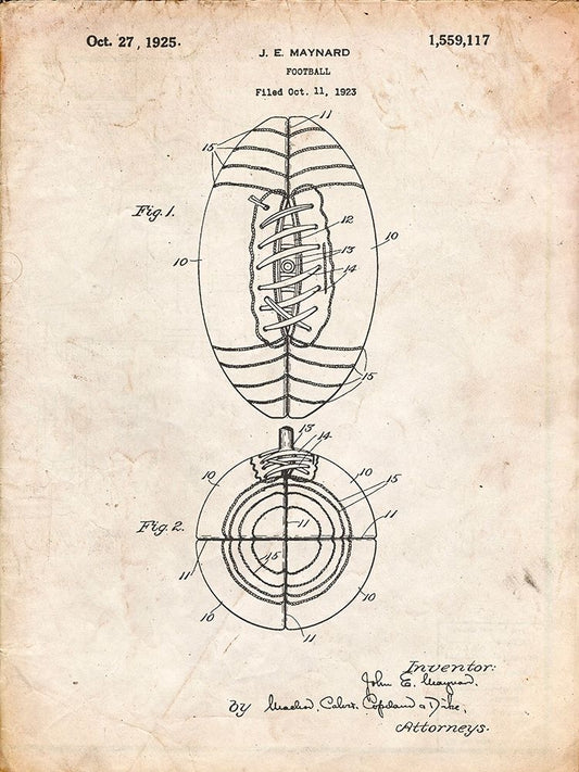PP379-Vintage Parchment Football Game Ball 1925 Patent Poster White Modern Wood Framed Art Print with Double Matting by Borders, Cole