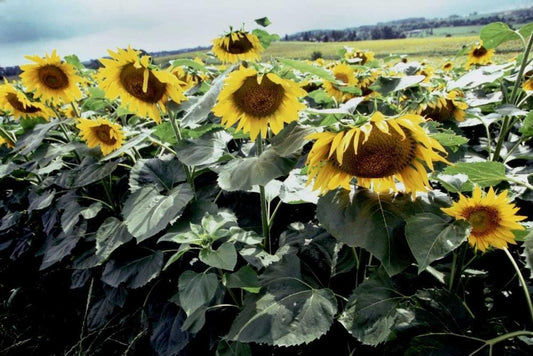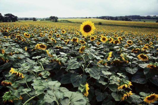 Sunflower Fields I White Modern Wood Framed Art Print with Double Matting by Stefko, Bob
