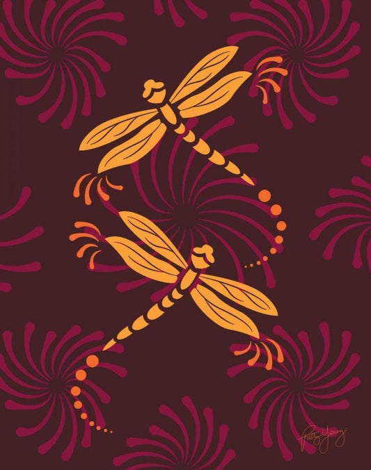 Modern Dragonflies White Modern Wood Framed Art Print with Double Matting by Young, Patty