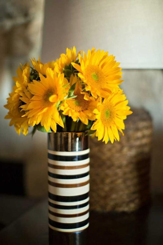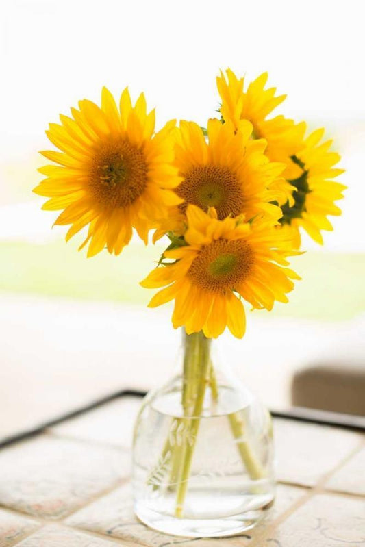 Sunflowers in Small Vase White Modern Wood Framed Art Print with Double Matting by Millet, Karyn