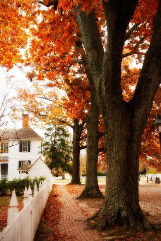 Small Town Autumn I White Modern Wood Framed Art Print with Double Matting by Hausenflock, Alan