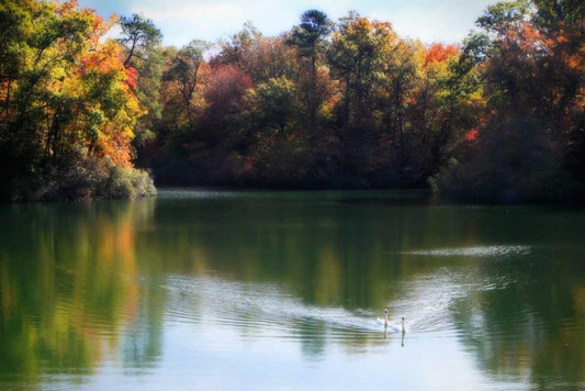 Swans on the Lake II White Modern Wood Framed Art Print with Double Matting by Hausenflock, Alan