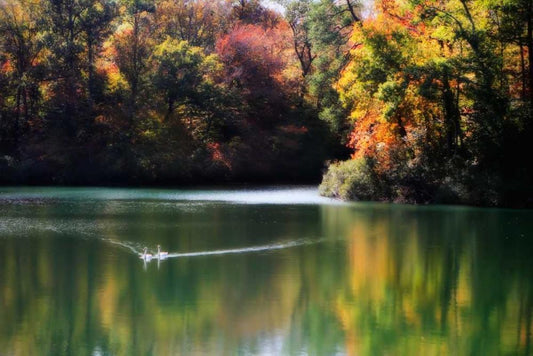 Swans on the Lake I White Modern Wood Framed Art Print with Double Matting by Hausenflock, Alan