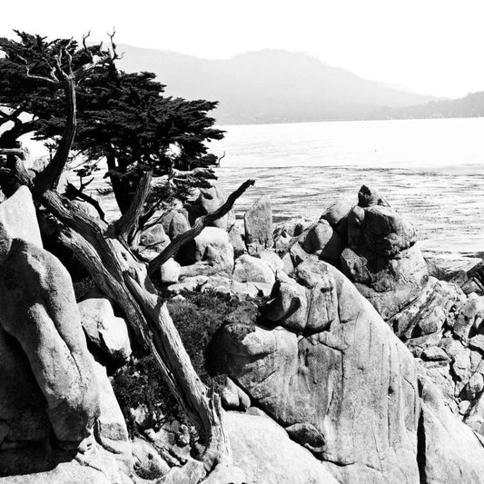 Ocean Cliff Square II White Modern Wood Framed Art Print with Double Matting by Hausenflock, Alan