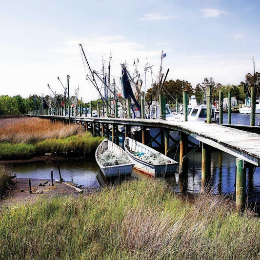 Marsh Harbor Square II White Modern Wood Framed Art Print with Double Matting by Hausenflock, Alan