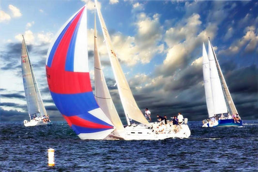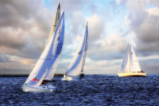 Sailing at Sunset I White Modern Wood Framed Art Print with Double Matting by Hausenflock, Alan