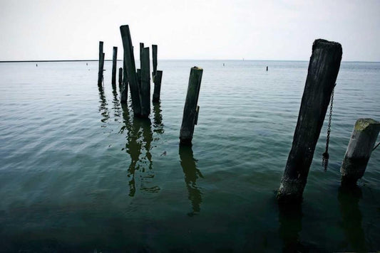 Pilings I White Modern Wood Framed Art Print with Double Matting by Hausenflock, Alan