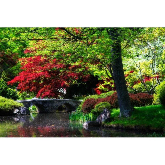 Garden Bridge II Gold Ornate Wood Framed Art Print with Double Matting by Hausenflock, Alan