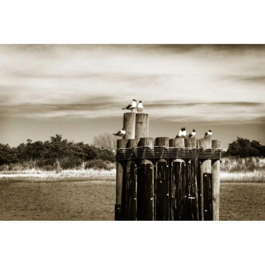 Pamlico Gulls II Gold Ornate Wood Framed Art Print with Double Matting by Hausenflock, Alan