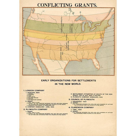 Conflicting Grants on the territory that was to become the USA Black Modern Wood Framed Art Print by Vintage Maps